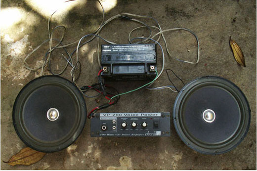 A guitarra foi preparada com cordas e knobs mais resistentes para sofrer as quedas. O amplificador foi alimentado com uma bateria de chumbo-ácido para que o som pudesse ser amplificado em local público.